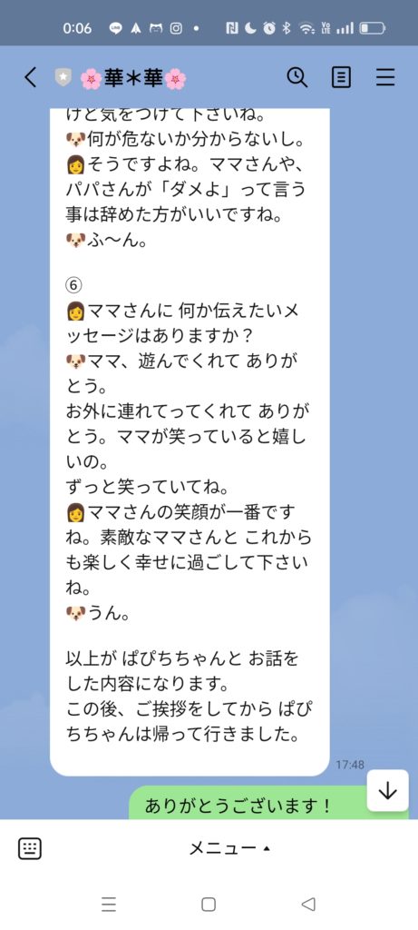 セッションをしてくださったアニマルコミュニケーター華*華さん