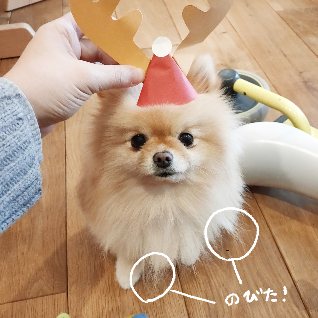 2020年11月ごろと比較すると、ぽぽちの寂しかった被毛が、アンダーコート(内側のふわふわの細い毛)が生えてきて毛の密度が少しUP、明らかにボリュームアップしてきています。写真ではわかりづらいのですが、手触りが全然違います。また、すでに生えていた毛の一部がびょ〜んと伸びてきました。