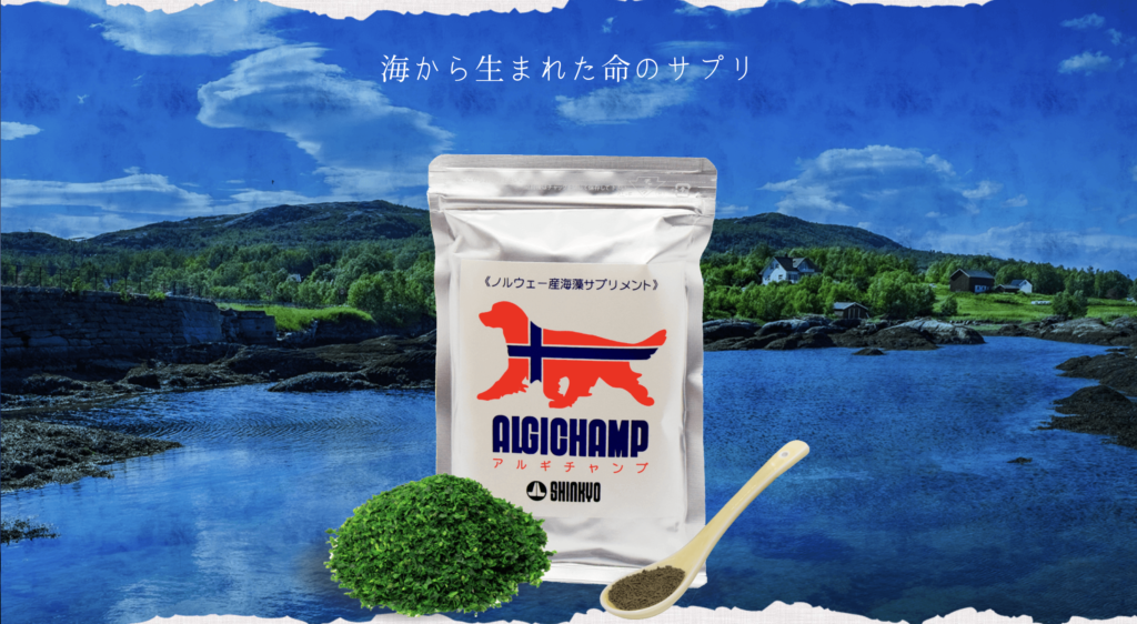 もともと、アルギチャンプを発売している神協産業株式会社はノルウェー産海藻「アルギット®︎」の健康食品や肥料などを販売している会社です。その「アルギット®︎」を犬用のサプリメントにしたものがこの「アルギチャンプ」ということですね。