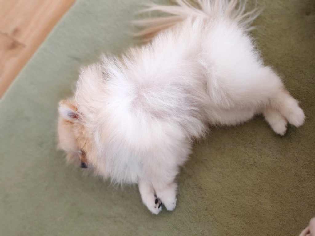 お腹の毛がスカスカだったのすが、体側側の毛をかき分けると地肌が透けていることに気がつきました。