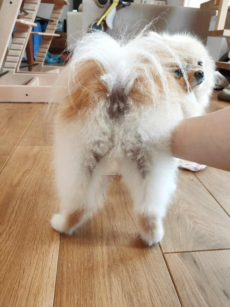お尻以外は結構生え揃ってきていたと思っていたので、ショックを受けました。(飼い主、ナーバスになる)