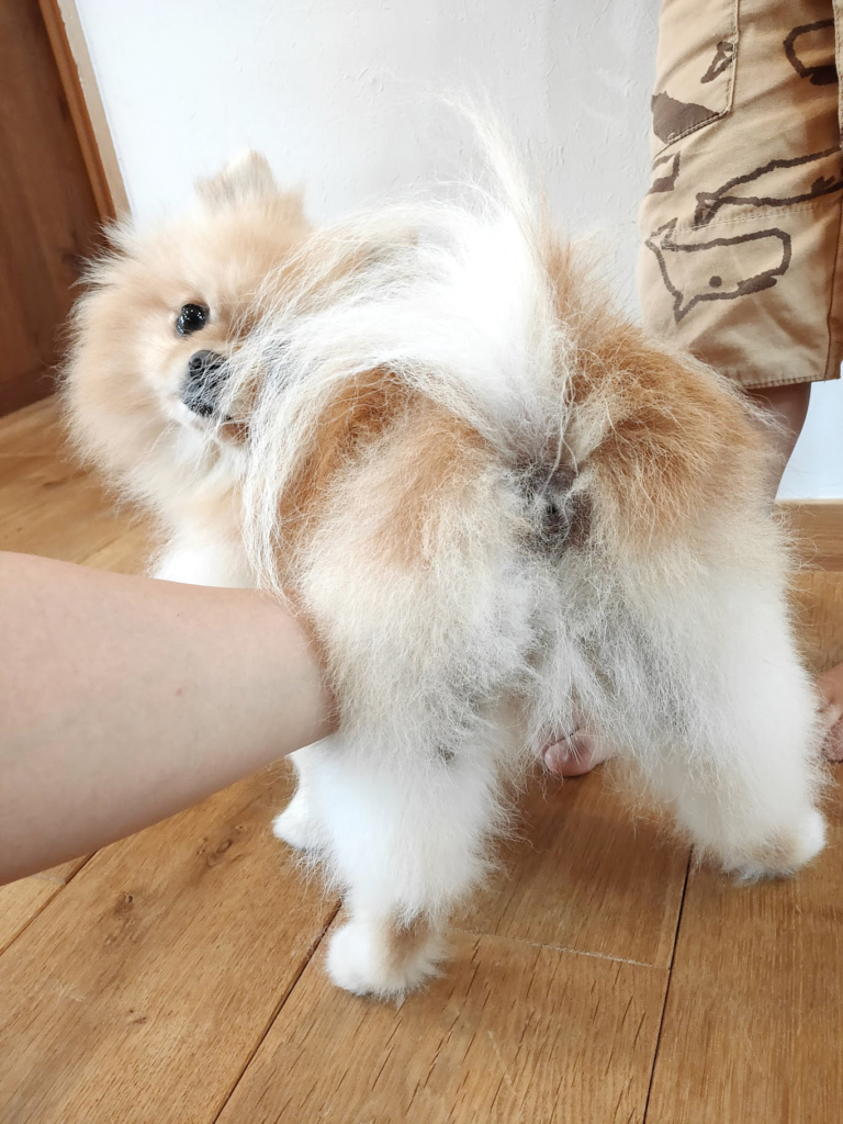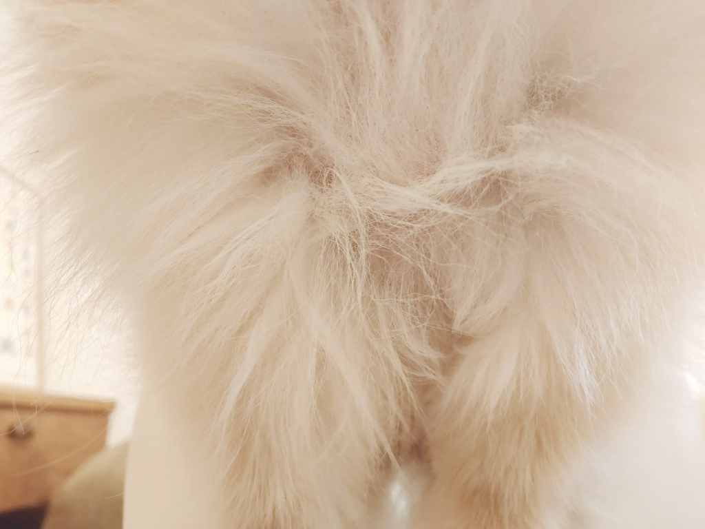 毛もちゃんと伸びてきたので、久しぶりに足回りだけ、ハサミで切りそろえました。