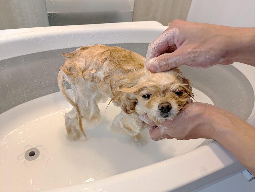 飼い主パンツ姿でシャンプーしなくてオッケー!