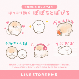 11月1日は「犬の日」🐾 ぽぽち&ぱぴちの【うごくスタンプ】が登場しました🎉