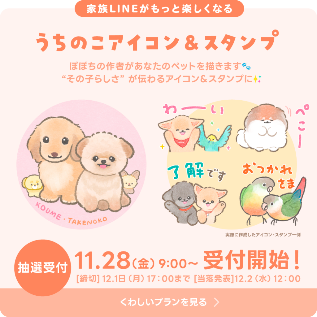 【終了】あなたの大切な子を“世界に一つのアイコン&スタンプ”に描きます