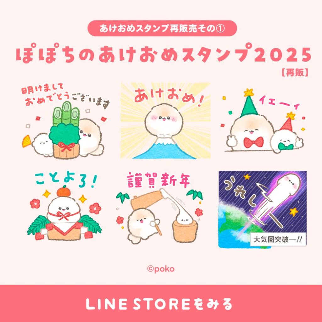 2025年にリリースしたぽぽちのあけおめスタンプが再登場!