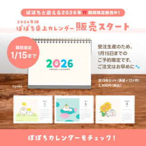 ぽぽちカレンダー2026販売スタート【1/15まで】 2025 10/17 2025.10.172025.11.27 この記事が気に入ったら フォローしてね! Follow @poko_ill よかったらシェアしてね! URLをコピーしました! アルバム「ぽぽちのうた」がリリースされました✨ 全17曲♪ Spotify / Apple Music / LINE MUSIC で聴けます! アラスカンマラミュートのスタンプがリリースされました! Related Post 「ぱぴちの気持ちを伝えるスタンプ2」がリリースされました! 2月のカレンダー・壁紙をお届けします ブラウザゲーム『ぱぴちのおんぷゲーム』ができました♪ 「ぽぽちのデカ文字 ほめことばスタンプ」がリリースされました! ぱぴちといちごのLINEきせかえができました🍓 1月のフリーアイコンをお届けします ゲームアップデート「ぽぽちのお正月」 新年もふもふ運試し✨ 🎯ファミマプリントにぽぽちみくじ登場!【1/31まで】