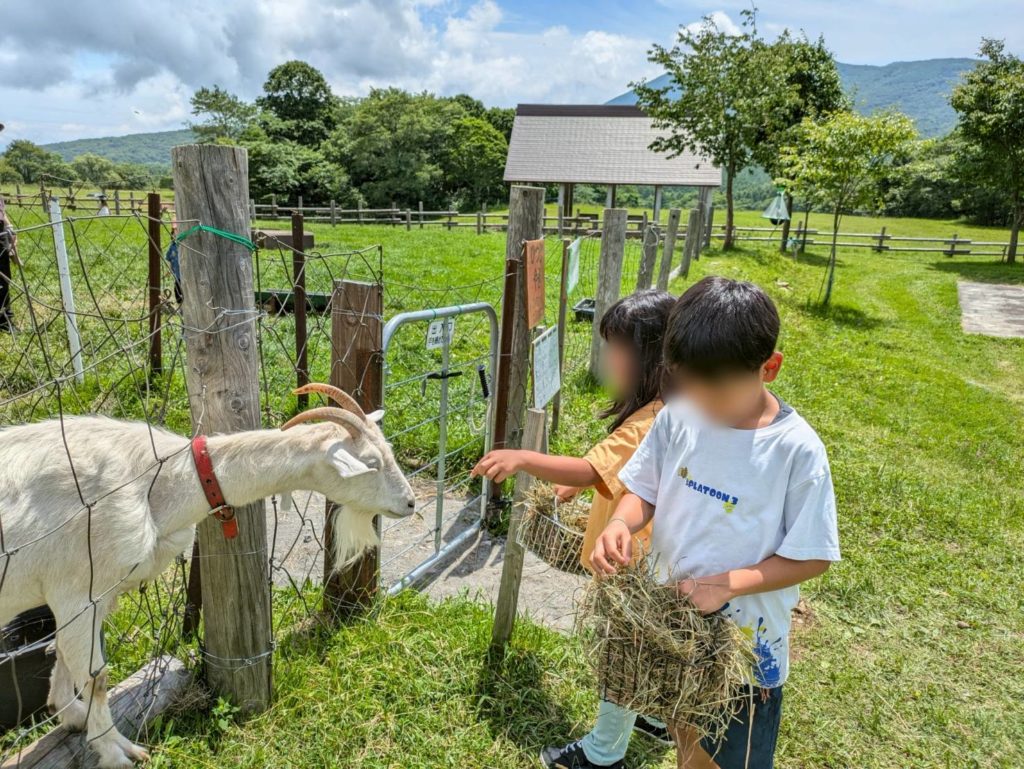 キャンプ場に隣接する「戸隠牧場」では、モルモットやうさぎ、ヤギやヒツジなど、さまざまな動物たちと触れ合うことができます。