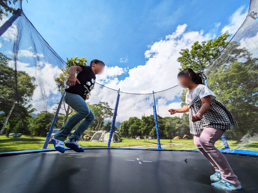 我が家の子どもたちも2人で仲良く跳ねていました。 自然に囲まれた場所で、思いきり体を動かせるのはやっぱり嬉しいようで、笑顔でジャンプを楽しんでいました。