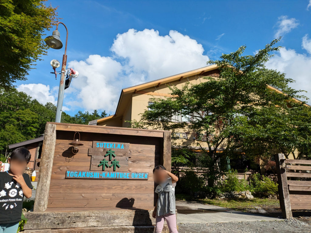 初日の夕方、汗をかいた体をさっぱりさせたくて立ち寄ったのが、「戸隠神告げ温泉 湯行館(ゆぎょうかん)」。 戸隠キャンプ場からは車で約10分ほどの距離でアクセスも良好です。